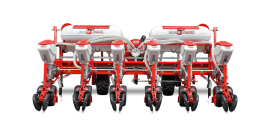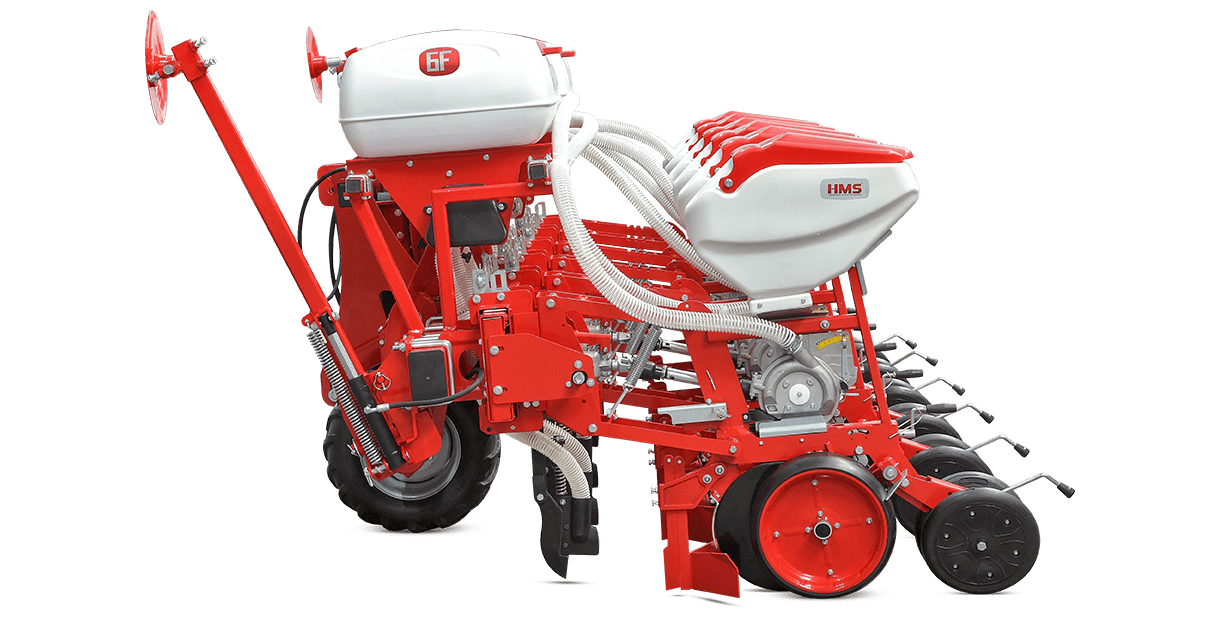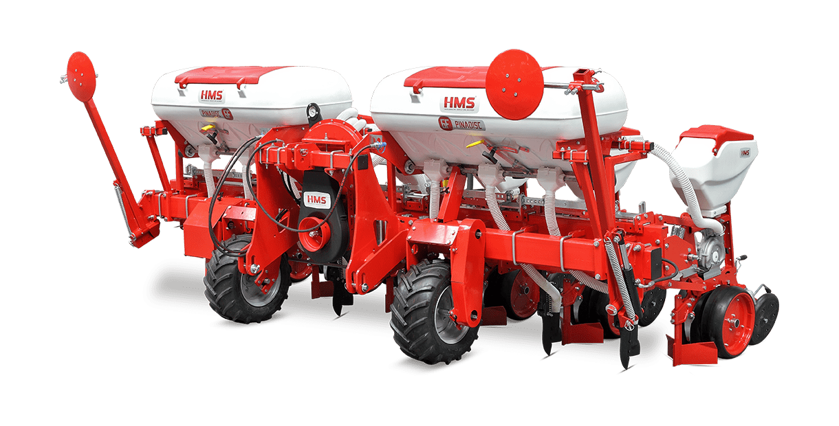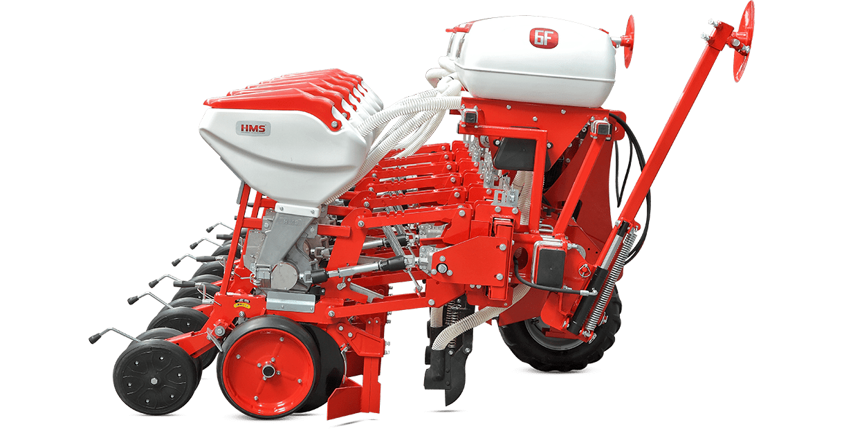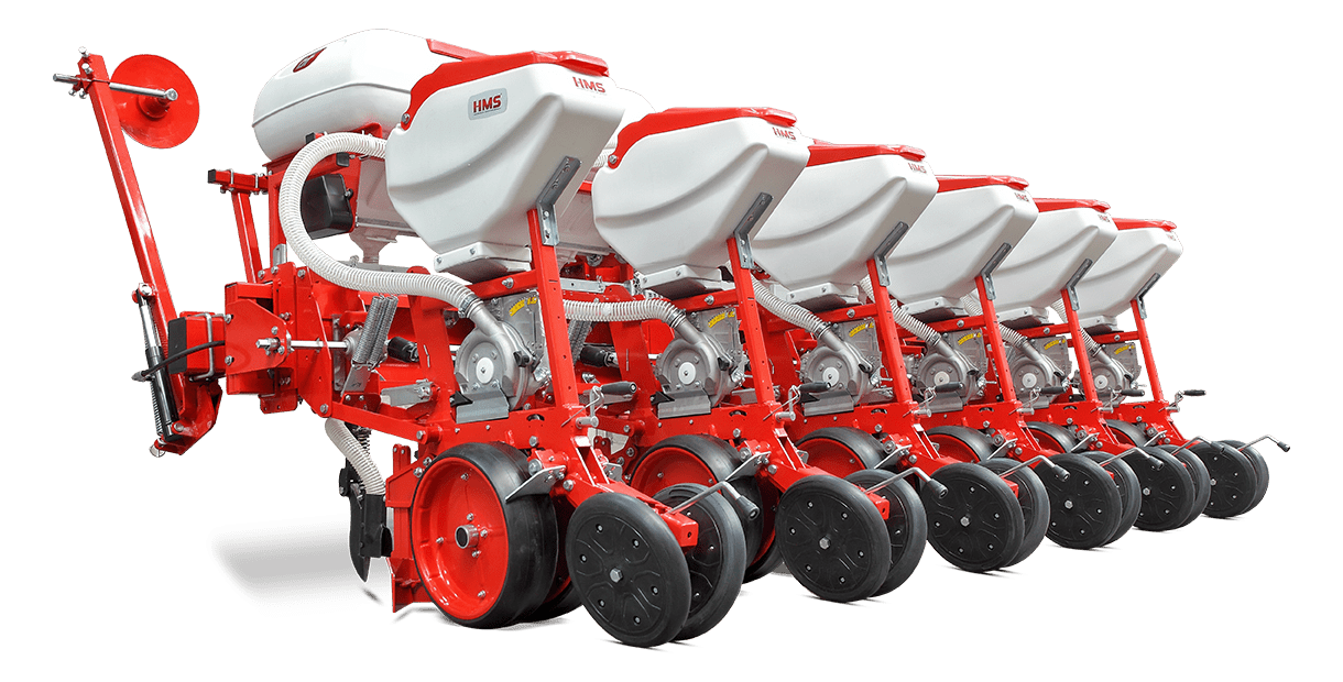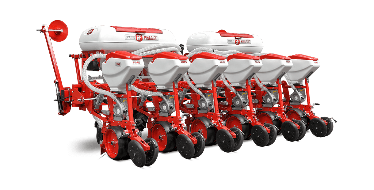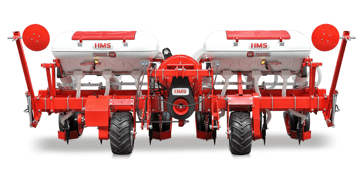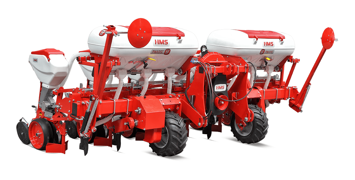 HMS DİSKLİ PNÖMATİK HASSAS EKİM MAKİNALARI her çeşit tohumun hassas olarak, istenilen ekim aralığında ve sıra üzeri mesafesinde ekilmesini sağlar. İsteğe bağlı olarak 4-6-8 sıralı olarak imal edilebilir. Ekici ünitelerde tohum yatağı disk vasıtasıyla açılır. Her ekim ünitesinde özel malzemeden üretilmiş, 2-adet disk bulunmaktadır. Ekici ünitelerin diskli tip olması ve şase önüne takılabilen kesici diskler sayesinde işlenmiş veya yarı işlenmiş sap kalıntıları bulunan tarlalarda çalışabilir. Tekerlekten alınan hareketin ekim ünitelerine iletimi şaft mekanizması ile yapıldığından, sıra üstü mesafelerde hassas ekim yapılabilmektedir. Ekici Ünitelerin her iki tarafında bulunan lastik tekerler sayesinde her türlü toprak şartlarında hassas olarak Derinlik ayarı yapılabilir. Tohum ünite arkasında bulunan V baskı tekerlekleri vasıtasıyla sıkıştırılır. Arka baskı tekerinin uyguladığı basınç ve açı yay vasıtası ile ayarlanabilir. V baskı tekerlekleri toprakta kaymak tabakası oluşumunu önler. Diskli ekim üniteleri erken tavda ekim yapmaya imkan sağlar. Disk ayaklı pnömatik ekim makinaları sırta ekim yapılabilmeye uygundur. Sırtları bozmaz. Tohum yatağı dönerek çalışan diskler tarafından açıldığından sertleşmez. Bitki gelişimine uygundur ve traktöre fazla yük getirmez. Üniteler istenildiği zaman kolayca yol ve iş durumuna geçer. İsteğe göre değişik aksesuarlar montaj edilebilir. Yüksek çalışma hızı ve mükemmel performansı ile zamandan tasarruf ve yüksek verim sağlayan bir ekim makinasıdır.