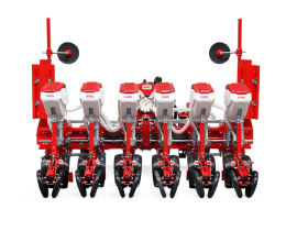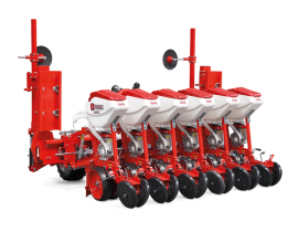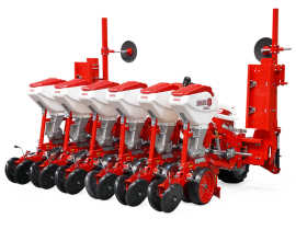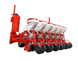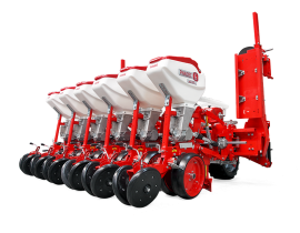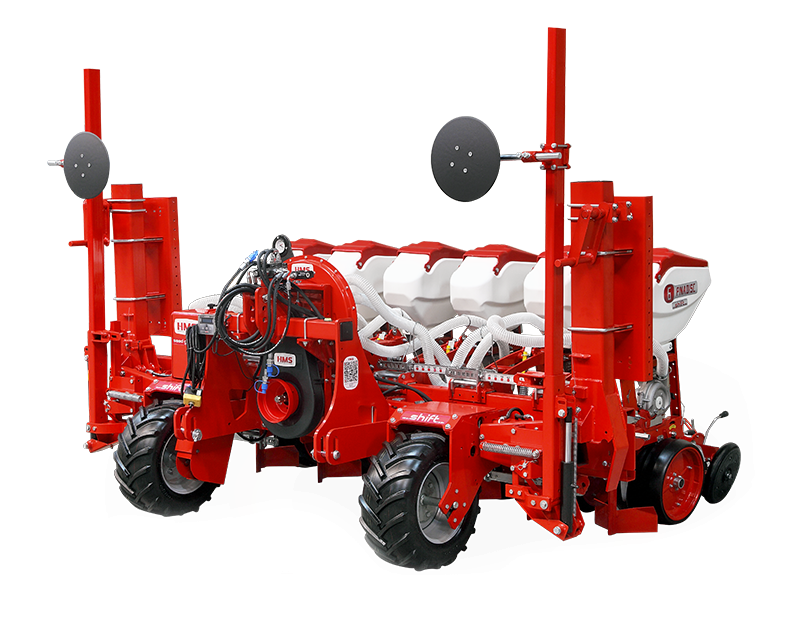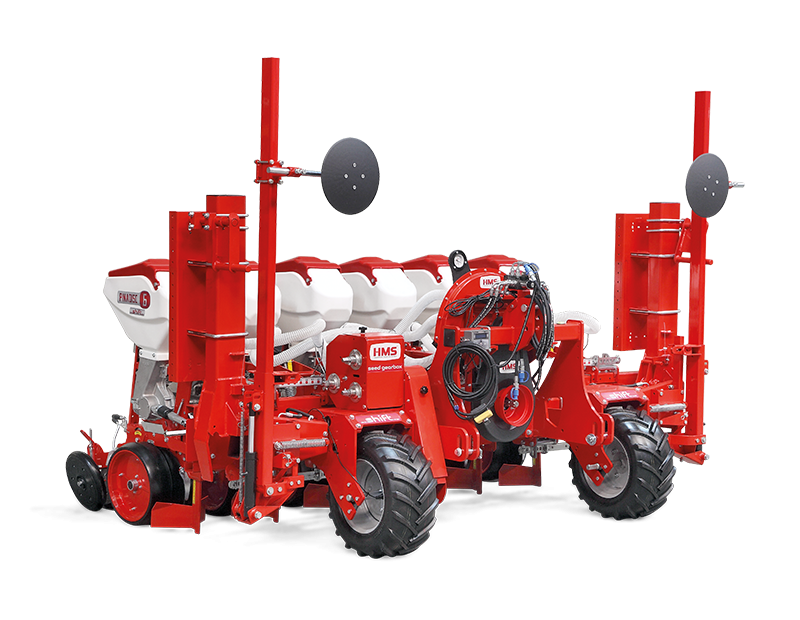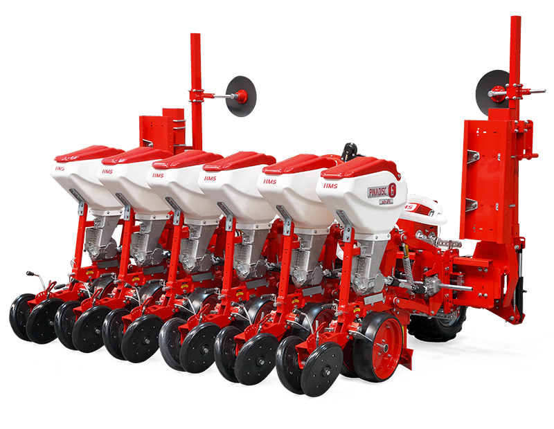 HMS DİSKLİ PNÖMATİK HASSAS EKİM MAKİNALARI her çeşit tohumun hassas olarak, istenilen ekim aralığında ve sıra üzeri mesafesinde ekilmesini sağlar. İsteğe bağlı olarak 4-6-8 sıralı olarak imal edilebilir. Ekici ünitelerde tohum yatağı disk vasıtasıyla açılır. Her ekim ünitesinde özel malzemeden üretilmiş, 2-adet disk bulunmaktadır. Ekici ünitelerin diskli tip olması ve şase önüne takılabilen kesici diskler sayesinde işlenmiş veya yarı işlenmiş sap kalıntıları bulunan tarlalarda çalışabilir. Tekerlekten alınan hareketin ekim ünitelerine iletimi şaft mekanizması ile yapıldığından, sıra üstü mesafelerde hassas ekim yapılabilmektedir. Ekici Ünitelerin her iki tarafında bulunan lastik tekerler sayesinde her türlü toprak şartlarında hassas olarak Derinlik ayarı yapılabilir. Tohum ünite arkasında bulunan V baskı tekerlekleri vasıtasıyla sıkıştırılır. Arka baskı tekerinin uyguladığı basınç ve açı yay vasıtası ile ayarlanabilir. V baskı tekerlekleri toprakta kaymak tabakası oluşumunu önler. Diskli ekim üniteleri erken tavda ekim yapmaya imkan sağlar. Disk ayaklı pnömatik ekim makinaları sırta ekim yapılabilmeye uygundur. Sırtları bozmaz. Tohum yatağı dönerek çalışan diskler tarafından açıldığından sertleşmez. Bitki gelişimine uygundur ve traktöre fazla yük getirmez. Üniteler istenildiği zaman kolayca yol ve iş durumuna geçer. İsteğe göre değişik aksesuarlar montaj edilebilir. Yüksek çalışma hızı ve mükemmel performansı ile zamandan tasarruf ve yüksek verim sağlayan bir ekim makinasıdır.