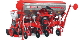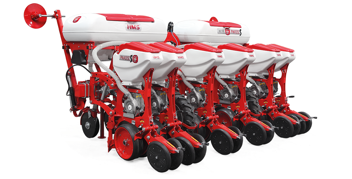 HMS DİSKLİ PNÖMATİK HASSAS EKİM MAKİNALARI her çeşit tohumun hassas olarak, istenilen ekim aralığında ve sıra üzeri mesafesinde ekilmesini sağlar. İsteğe bağlı olarak 4-6-8 sıralı olarak imal edilebilir. Ekici ünitelerde tohum yatağı disk vasıtasıyla açılır. Her ekim ünitesinde özel malzemeden üretilmiş, 2-adet disk bulunmaktadır. Ekici ünitelerin diskli tip olması ve şase önüne takılabilen kesici diskler sayesinde işlenmiş veya yarı işlenmiş sap kalıntıları bulunan tarlalarda çalışabilir. Tekerlekten alınan hareketin ekim ünitelerine iletimi şaft mekanizması ile yapıldığından, sıra üstü mesafelerde hassas ekim yapılabilmektedir. Ekici Ünitelerin her iki tarafında bulunan lastik tekerler sayesinde her türlü toprak şartlarında hassas olarak Derinlik ayarı yapılabilir. Tohum ünite arkasında bulunan V baskı tekerlekleri vasıtasıyla sıkıştırılır. Arka baskı tekerinin uyguladığı basınç ve açı yay vasıtası ile ayarlanabilir. V baskı tekerlekleri toprakta kaymak tabakası oluşumunu önler. Diskli ekim üniteleri erken tavda ekim yapmaya imkan sağlar. Disk ayaklı pnömatik ekim makinaları sırta ekim yapılabilmeye uygundur. Sırtları bozmaz. Tohum yatağı dönerek çalışan diskler tarafından açıldığından sertleşmez. Bitki gelişimine uygundur ve traktöre fazla yük getirmez. Üniteler istenildiği zaman kolayca yol ve iş durumuna geçer. İsteğe göre değişik aksesuarlar montaj edilebilir. Yüksek çalışma hızı ve mükemmel performansı ile zamandan tasarruf ve yüksek verim sağlayan bir ekim makinasıdır.