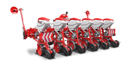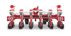 HMS DİSKLİ PNÖMATİK HASSAS EKİM MAKİNALARI her çeşit tohumun hassas olarak, istenilen ekim aralığında ve sıra üzeri mesafesinde ekilmesini sağlar. İsteğe bağlı olarak 4-6-8 sıralı olarak imal edilebilir. Ekici ünitelerde tohum yatağı disk vasıtasıyla açılır. Her ekim ünitesinde özel malzemeden üretilmiş, 2-adet disk bulunmaktadır. Ekici ünitelerin diskli tip olması ve şase önüne takılabilen kesici diskler sayesinde işlenmiş veya yarı işlenmiş sap kalıntıları bulunan tarlalarda çalışabilir. Tekerlekten alınan hareketin ekim ünitelerine iletimi şaft mekanizması ile yapıldığından, sıra üstü mesafelerde hassas ekim yapılabilmektedir. Ekici Ünitelerin her iki tarafında bulunan lastik tekerler sayesinde her türlü toprak şartlarında hassas olarak Derinlik ayarı yapılabilir. Tohum ünite arkasında bulunan V baskı tekerlekleri vasıtasıyla sıkıştırılır. Arka baskı tekerinin uyguladığı basınç ve açı yay vasıtası ile ayarlanabilir. V baskı tekerlekleri toprakta kaymak tabakası oluşumunu önler. Diskli ekim üniteleri erken tavda ekim yapmaya imkan sağlar. Disk ayaklı pnömatik ekim makinaları sırta ekim yapılabilmeye uygundur. Sırtları bozmaz. Tohum yatağı dönerek çalışan diskler tarafından açıldığından sertleşmez. Bitki gelişimine uygundur ve traktöre fazla yük getirmez. Üniteler istenildiği zaman kolayca yol ve iş durumuna geçer. İsteğe göre değişik aksesuarlar montaj edilebilir. Yüksek çalışma hızı ve mükemmel performansı ile zamandan tasarruf ve yüksek verim sağlayan bir ekim makinasıdır.