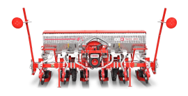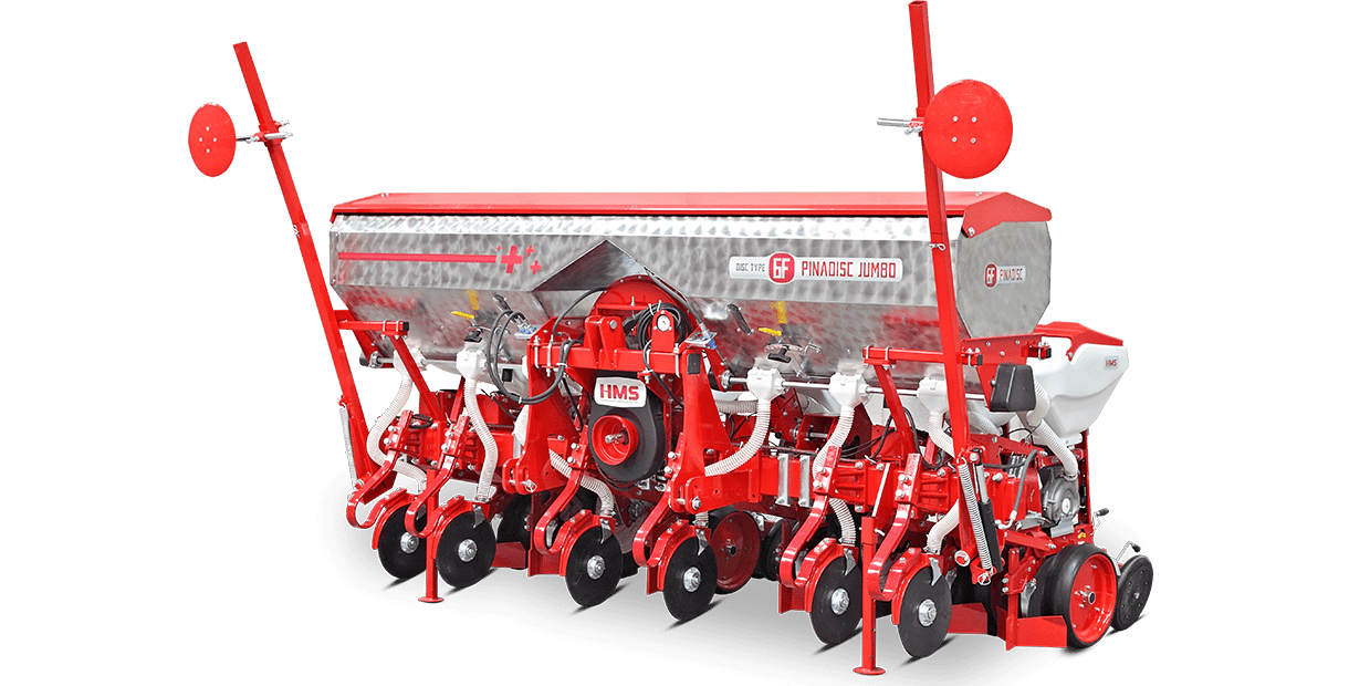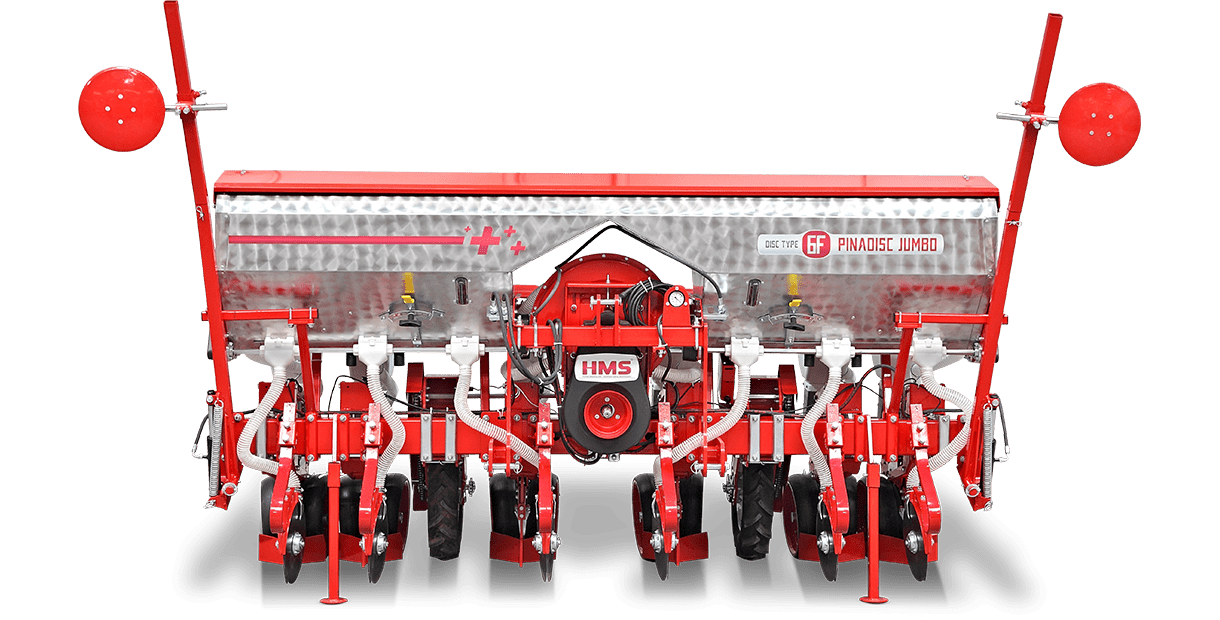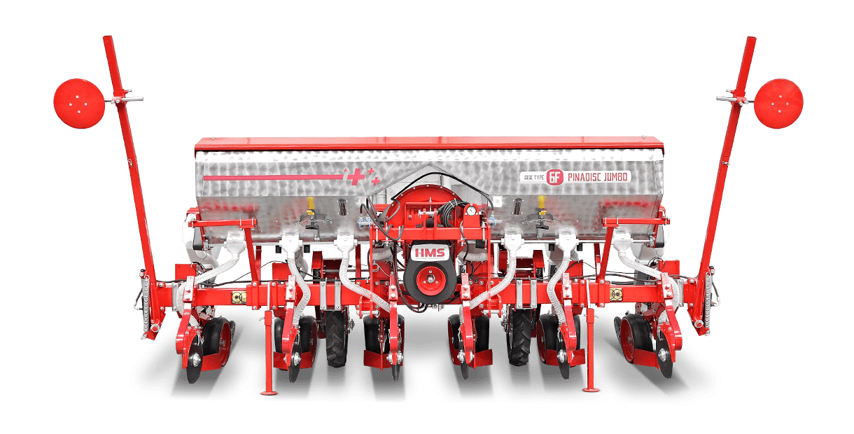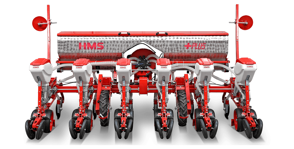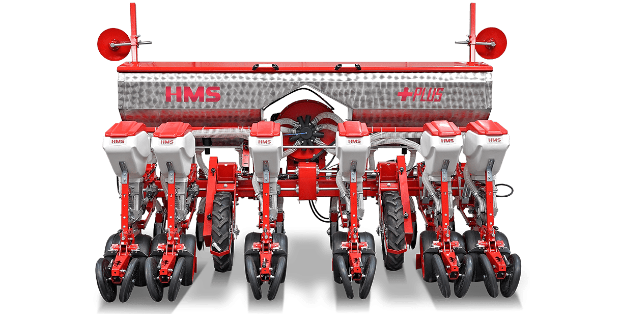 HMS DİSKLİ PNÖMATİK HASSAS EKİM MAKİNALARI her çeşit tohumun hassas olarak, istenilen ekim aralığında ve sıra üzeri mesafesinde ekilmesini sağlar. İsteğe bağlı olarak 4-6-8 sıralı olarak imal edilebilir. Ekici ünitelerde tohum yatağı disk vasıtasıyla açılır. Her ekim ünitesinde özel malzemeden üretilmiş, 2-adet disk bulunmaktadır. Ekici ünitelerin diskli tip olması ve şase önüne takılabilen kesici diskler sayesinde işlenmiş veya yarı işlenmiş sap kalıntıları bulunan tarlalarda çalışabilir. Tekerlekten alınan hareketin ekim ünitelerine iletimi şaft mekanizması ile yapıldığından, sıra üstü mesafelerde hassas ekim yapılabilmektedir. Ekici Ünitelerin her iki tarafında bulunan lastik tekerler sayesinde her türlü toprak şartlarında hassas olarak Derinlik ayarı yapılabilir. Tohum ünite arkasında bulunan V baskı tekerlekleri vasıtasıyla sıkıştırılır. Arka baskı tekerinin uyguladığı basınç ve açı yay vasıtası ile ayarlanabilir. V baskı tekerlekleri toprakta kaymak tabakası oluşumunu önler. Diskli ekim üniteleri erken tavda ekim yapmaya imkan sağlar. Disk ayaklı pnömatik ekim makinaları sırta ekim yapılabilmeye uygundur. Sırtları bozmaz. Tohum yatağı dönerek çalışan diskler tarafından açıldığından sertleşmez. Bitki gelişimine uygundur ve traktöre fazla yük getirmez. Üniteler istenildiği zaman kolayca yol ve iş durumuna geçer. İsteğe göre değişik aksesuarlar montaj edilebilir. Yüksek çalışma hızı ve mükemmel performansı ile zamandan tasarruf ve yüksek verim sağlayan bir ekim makinasıdır.