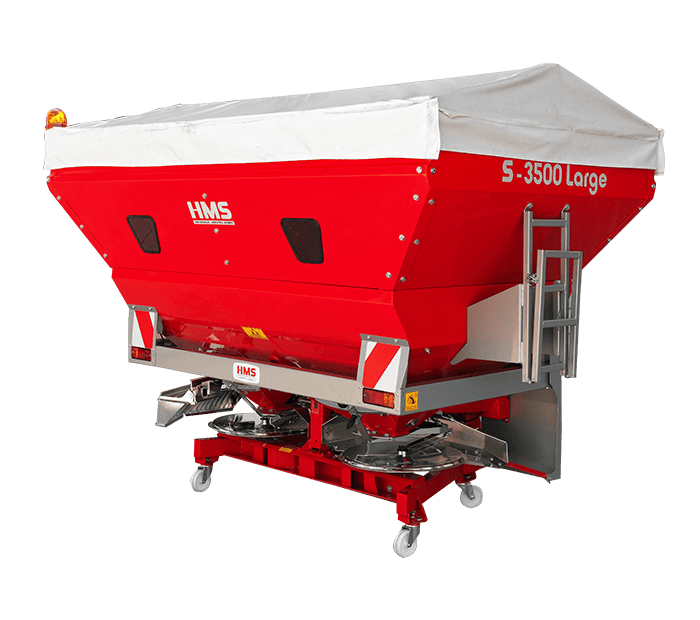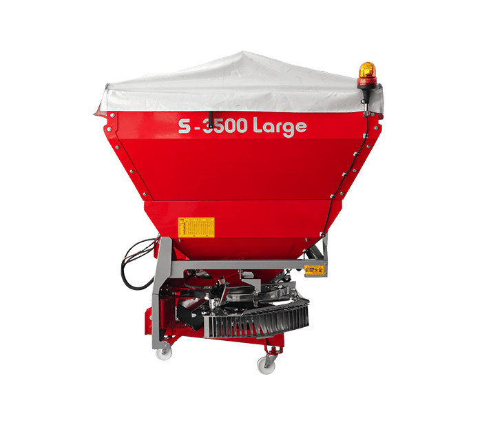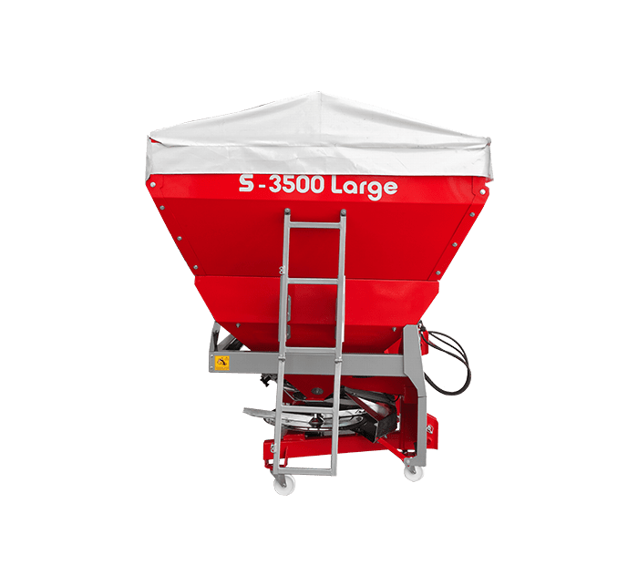 Large serisi gübre serpme makinesi 3500 lt depo hacmi ile üretilmektedir. S Large serisi gübre serpme makinelerinde; yatay karışıtıcı, krom diskler,krom karıştırıcı ve krom zincir, trafik seti, çadır ve merdiven standart olarak sunulmaktadır.