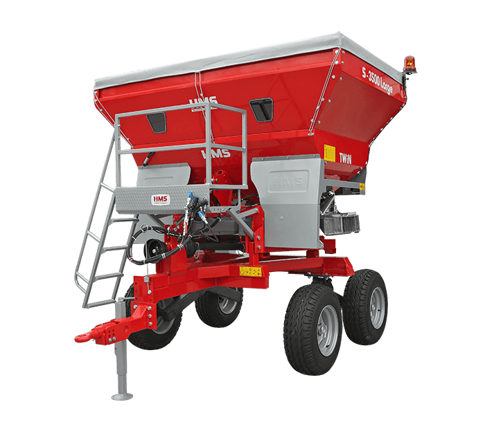 Twin serisi gübre serpme makinesi çift dingil ve çekilir tip olarak 2500 lt, 3000 lt, 3500 lt ve 3500 Large (basık) olarak imal edilmektedir. S Maxi serisi gübre serpme makinelerinde ;yatay karışıtıcı, krom diskler,krom karıştırıcı ve krom zincir, trafik seti,çadır ve merdiven standart olarak sunulmaktadır